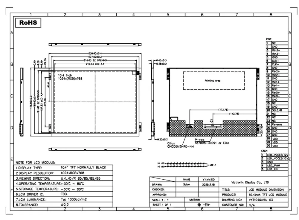 Ang Victronix 10.4 pulgada 1024 × 768 LVDS High Lightness TFT module ay isang mataas na pagganap na 10.4 pulgada TFT-LCD module na ininhinyero para sa pagiging maaasahan sa mga pang-industriya na kapaligiran. Nagtatampok ng isang panel ng IPS na may resolusyon na 1024 × 768 at 16.7 milyong mga kulay, naghahatid ito ng pambihirang visual na kalinawan na may malawak na mga anggulo ng pagtingin na 85 ° (3/6/9/12 O'Clock Direksyon). Bukod, nag -aalok ito ng isang 1000 CD/m² na mataas na ningning, isang ratio ng 1000: 1 na kaibahan, at isang 80% na pagkakapareho para sa malinaw na pagtingin sa ilalim ng direktang sikat ng araw. Bilang isang propesyonal na tagagawa at tagapagtustos ng mga module ng TFT sa China, ang module na Victronix 10.4 pulgada na TFT ay ganap na sumusunod sa mga pamantayan sa kapaligiran ng ROHS, na tinitiyak ang mahusay na pagganap ng aplikasyon. Nag -aalok kami ng isang pasadyang serbisyo upang matugunan ang mga pangangailangan ng aming mga customer.